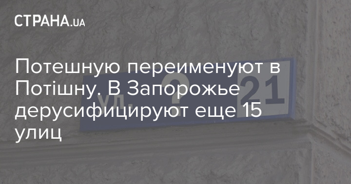 Потішну перейменують на Потішну. У Запоріжжі дерусифікують ще 15 вулиць