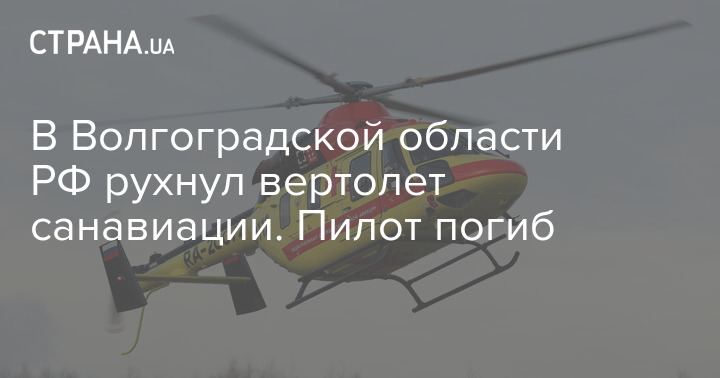У Волгоградській області РФ зазнав аварії вертоліт санавіації. Пілот загинув.