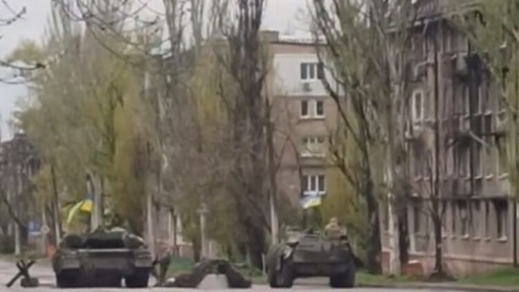Кадри, на яких видно танки з прапорами України, датуються 22 квітня.