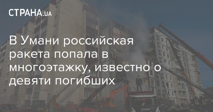 В Умані російська ракета потрапила в багатоповерхівку, відомо про дев'ятьох загиблих.