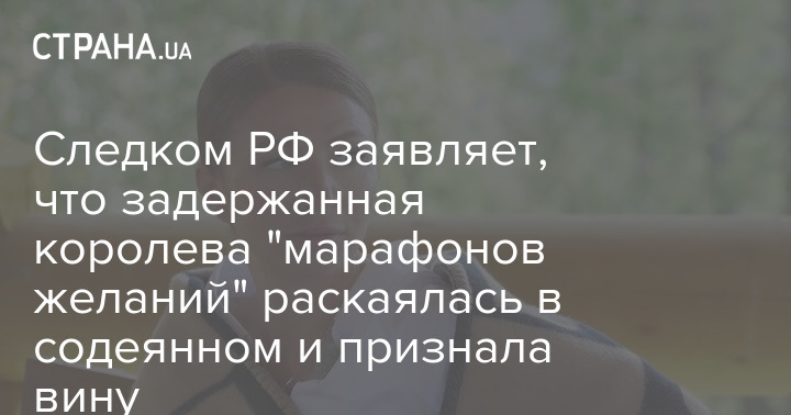 Слідком РФ заявляє, що затримана королева "марафонів бажань" покаялася у скоєному та визнала провину
