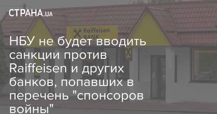 Наприкінці березня 2023 року НАЗК назвало спонсором війни австрійську фінансову групу Raiffeisen Bank International, чия "дочка" продовжує працювати в РФ, і сплачує податки у цій країні. На адресу Нацбанку України після цього пішли запити - чи можна вважати спонсором тероризму та застосовувати санкції до українського Райффайзен Банку, який входить до австрійської групи. Тепер із відповіді НБУ зрозуміло, що обмеження і заборони до нього застосовувати не планують.