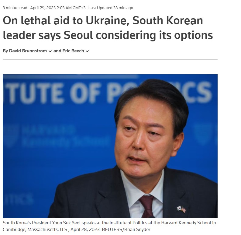 На питання щодо можливості надання Південної Кореї летальної допомоги Україні він заявив, що розглядаються "різні варіанти".