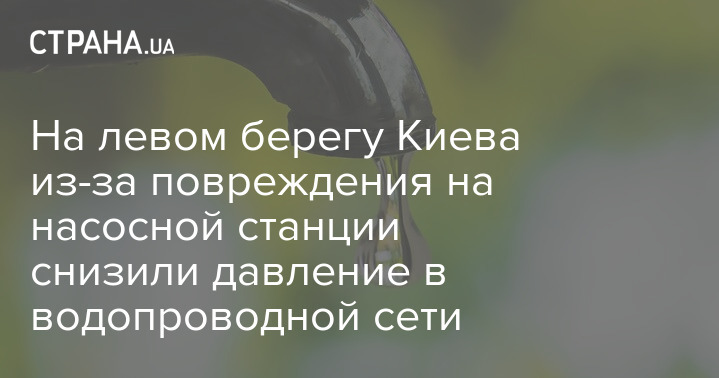 На лівому березі Києва знижено тиск у водопровідній мережі через пошкодження електричного обладнання на насосній станції.