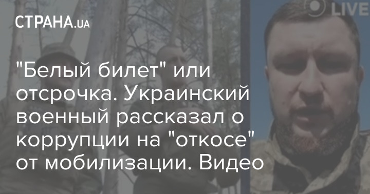 За словами військового, є напрацьовані корупційні схеми, завдяки яким призовники ухиляються від мобілізації. Він заявляє, що, за деякими даними, за оформлення білого квитка вимагають до 5-6 тисяч доларів. А, наприклад, відстрочка від призову на півроку коштує близько двох тисяч доларів.