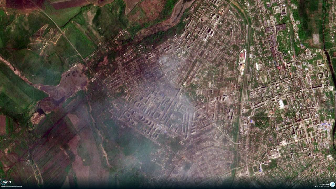 Це видно і за супутниковими знімками. Над західною частиною міста помітно сильне задимлення – що говорить про інтенсивне витрачання снарядів, яких, за версією Пригожина, є великий дефіцит. Що, як ми вже писали, не підтверджують бійці ЗСУ – вони заявляють, що інтенсивність обстрілів останнім часом не знижувалась.