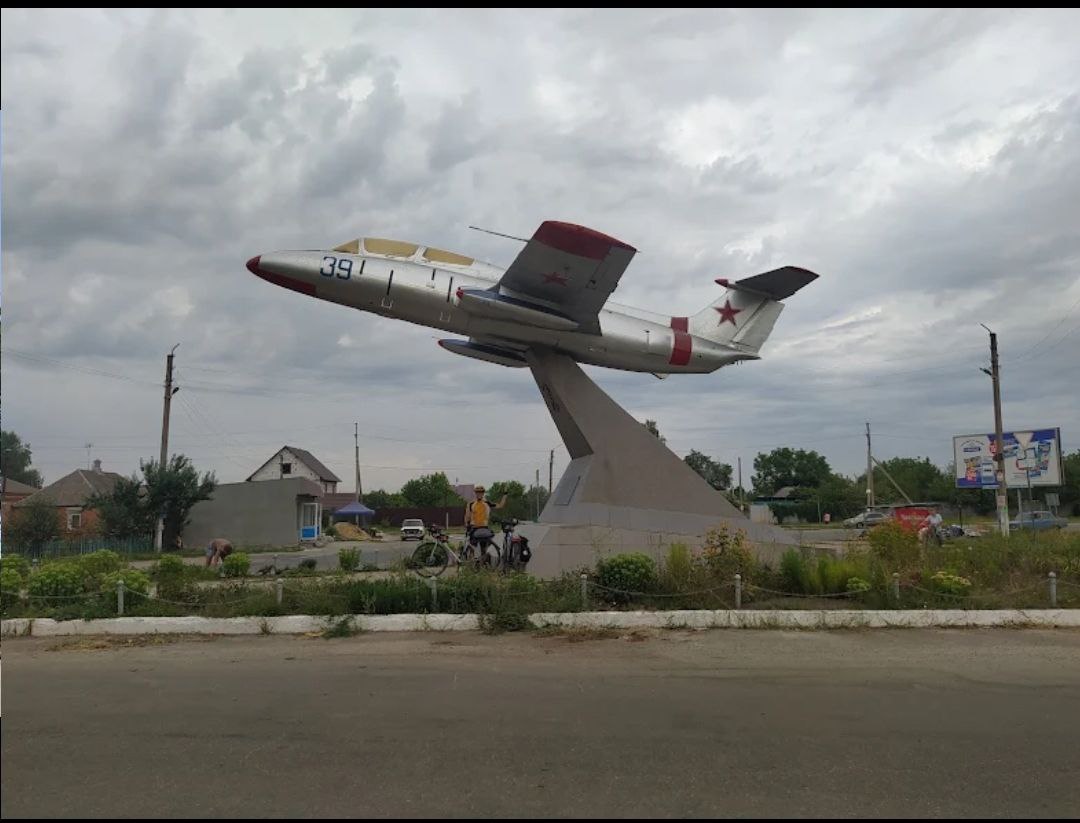 Там на постаменті раніше стояв навчальний літак (останнє фото – як пам'ятник виглядав раніше).