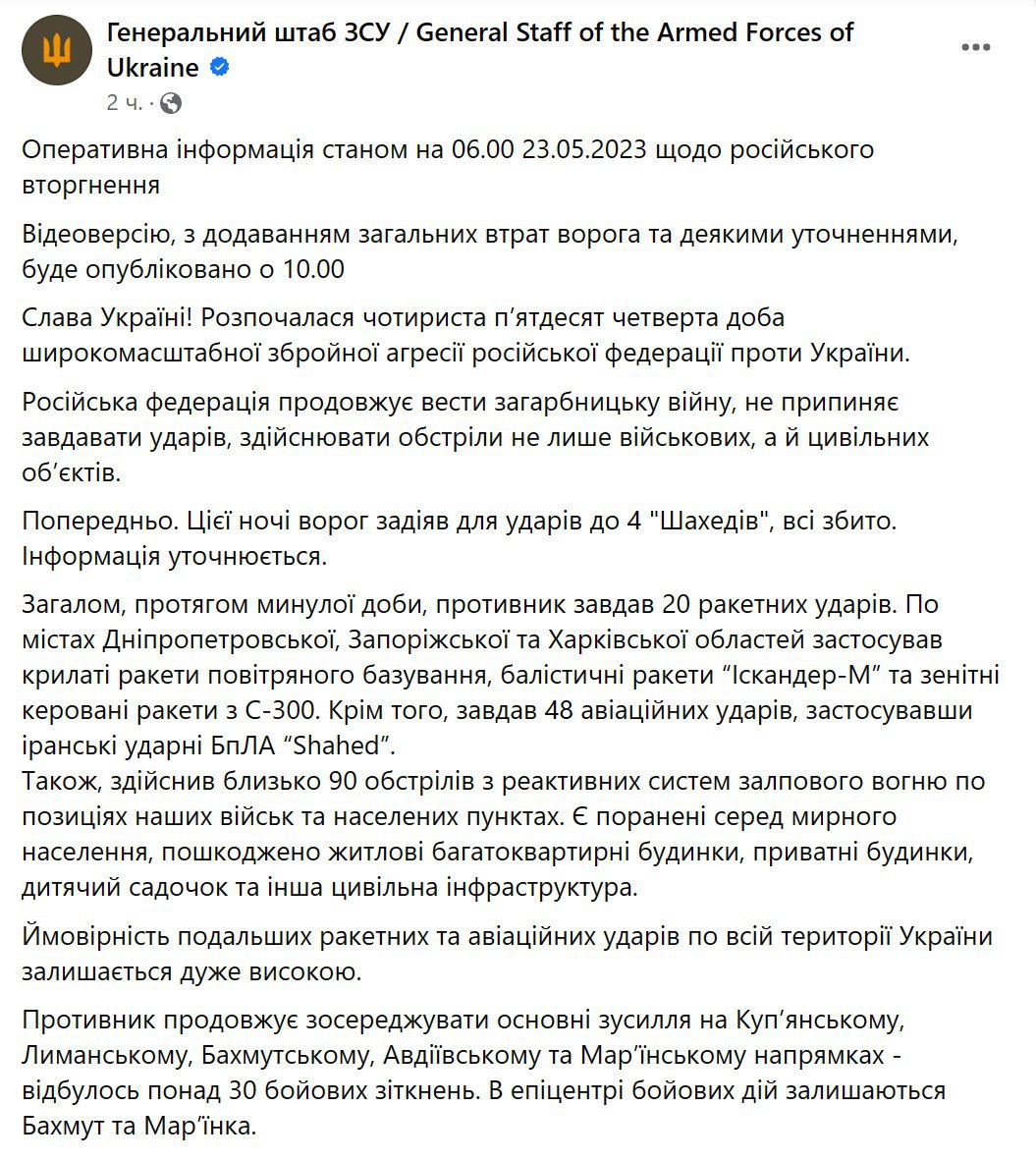 Подробиці про вчорашні події читайте у підсумках за 22 травня.