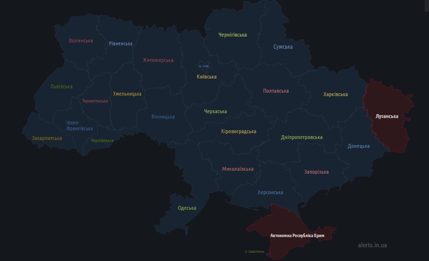 23.45 Тривога вже й у Києві, а також у Херсонській області.