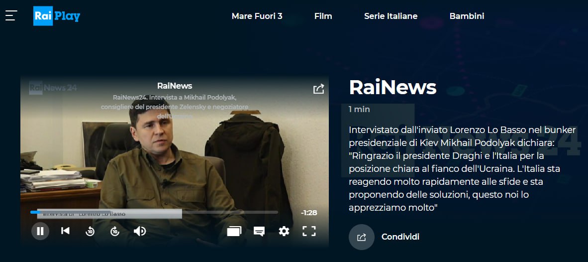 "Контрнаступ триває вже кілька днів. Повномасштабна війна розтягнулася на 1,5 тисячі кілометрів уздовж кордону з Росією", - заявив Подоляк в ефірі італійського телеканалу Rai 1.