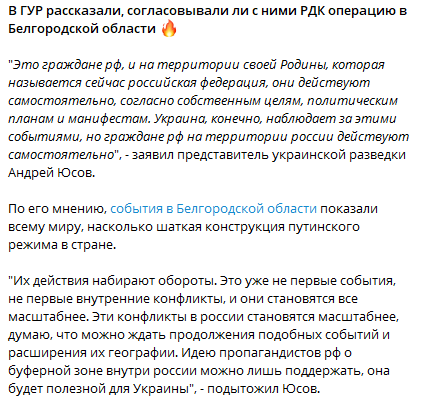 Також ми писали про рейд у Білгородську область та про зв'язки РДК з ГУР.