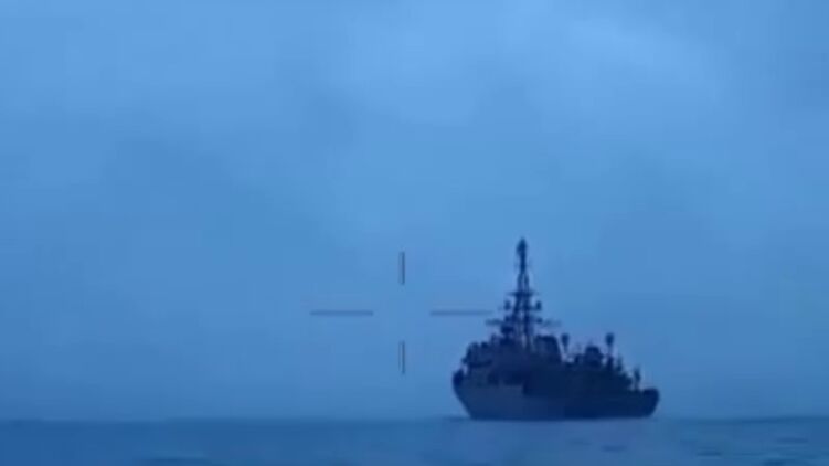 Раніше міноборони РФ публікувало відео знищення одного з трьох катерів, котрі атакували судно.