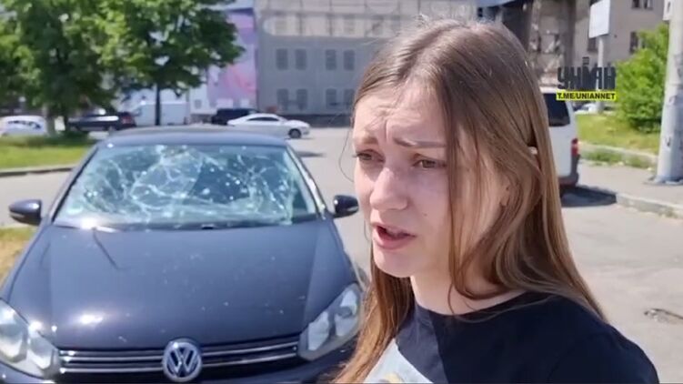 В результаті постраждав її автомобіль, але дівчина залишилася цілою. На відео її машина знаходиться приблизно в районі Поштової площі та Рибальського острова. У автомобіля розбито лобове скло.