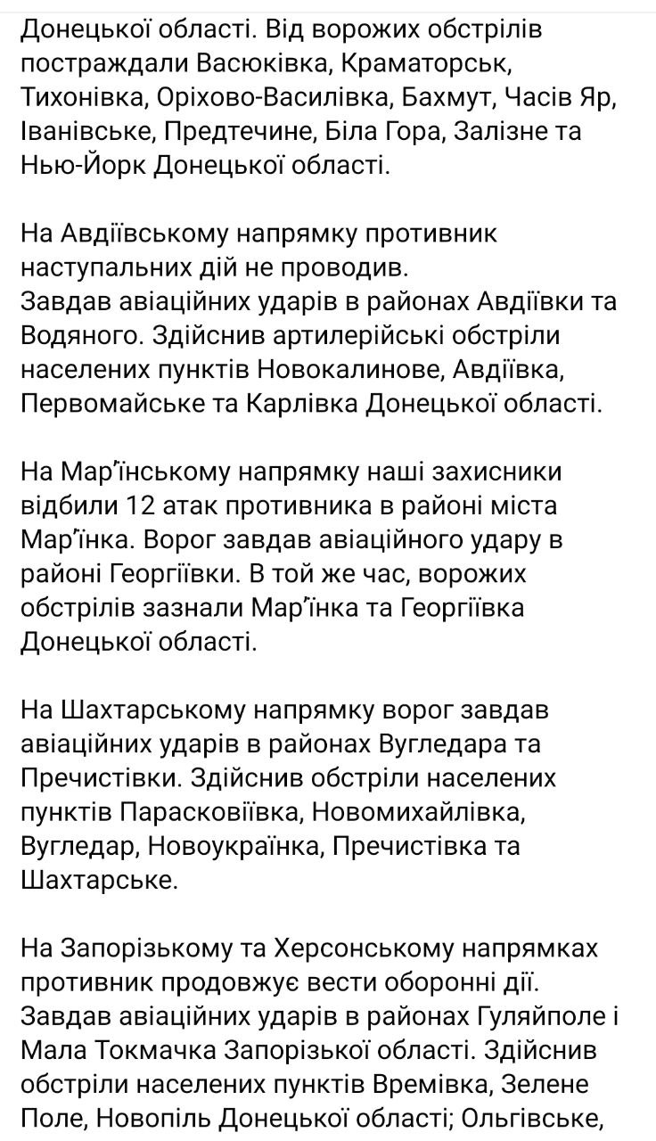 - Під Лиманом, Бахмутом та Авдіївкою атак РФ не здійснювалося.