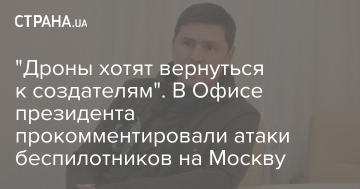 Радник глави Офісу президента Михайло Подоляк дав зрозуміти, що Україна не має прямого відношення до атак безпілотників на Москву.