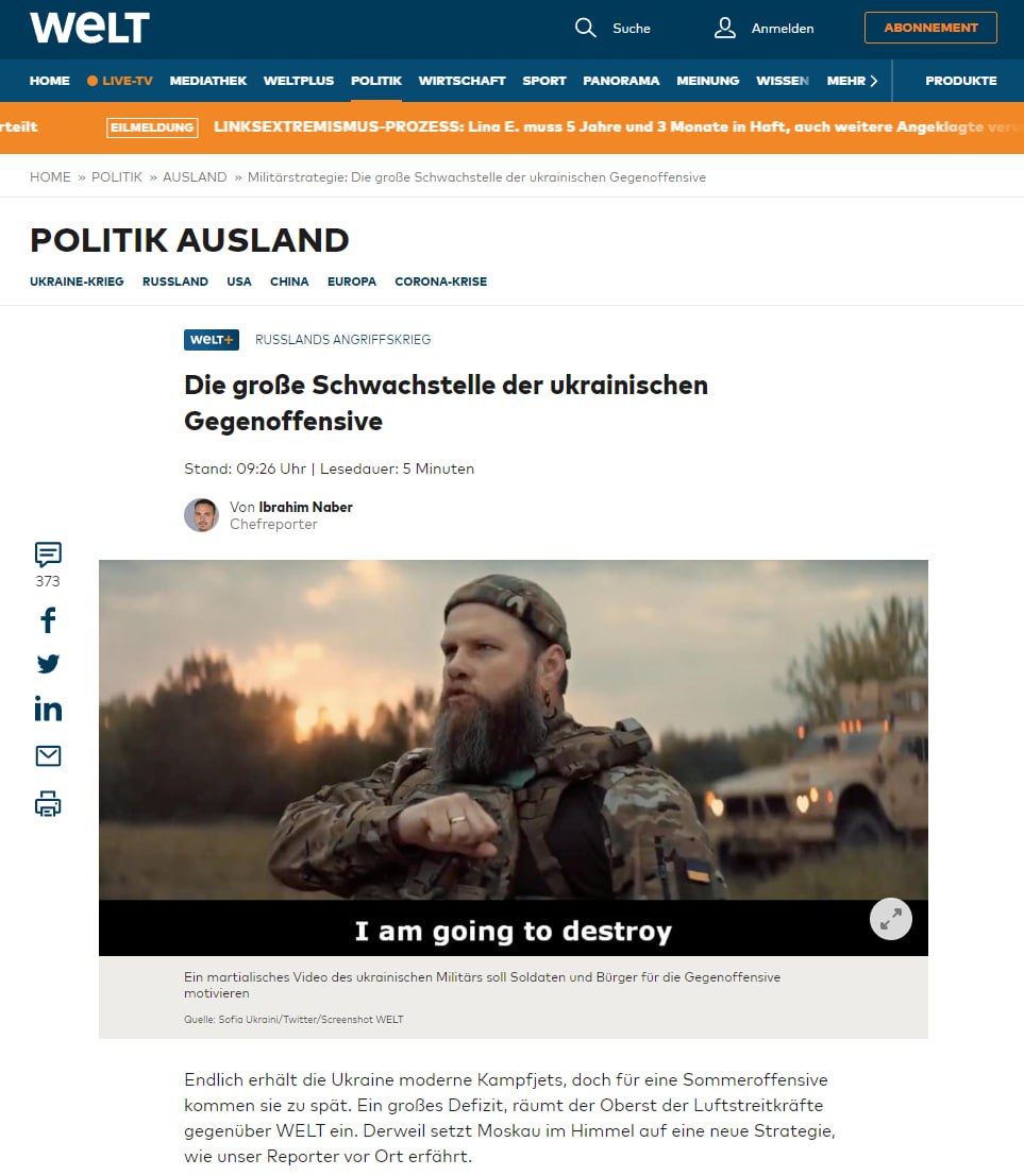 11:55 Основна слабкість українського контрнаступу - дефіцит винищувачів, пише німецький Welt.