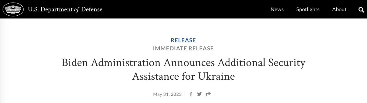 20:50 США нададуть Україні новий пакет військової допомоги, куди увійдуть боєприпаси для систем ППО Patriot, РСЗВ HIMARS.