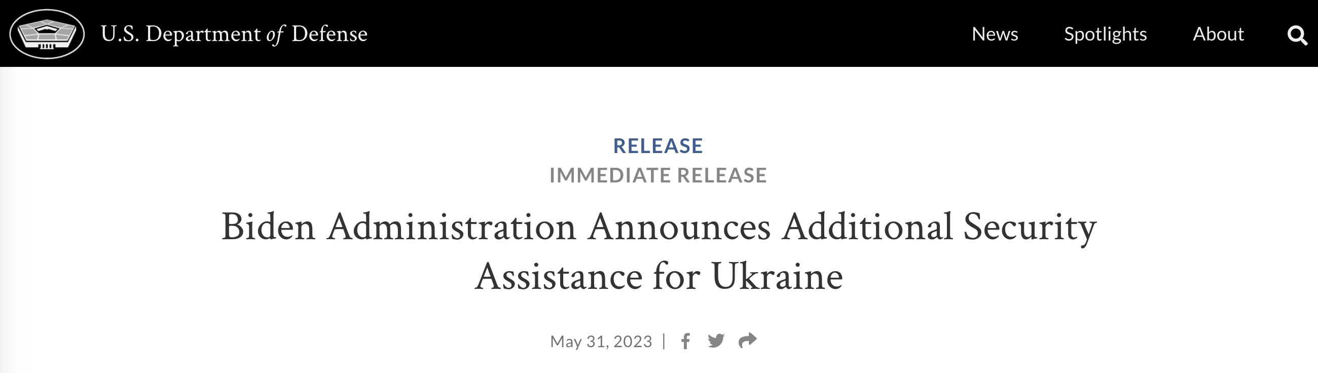Сполучені Штати нададуть Україні новий пакет військової допомоги на 300 млн. доларів, куди увійдуть боєприпаси для систем ППО Patriot, РСЗВ HIMARS, а також система ППО Avenger.