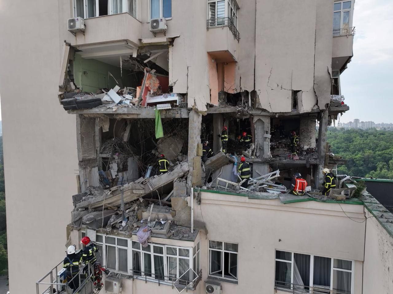 Пошуково-рятувальні роботи у будинку тривають. З будинку врятували 22 особи.