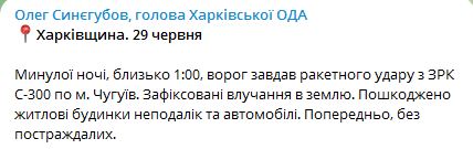 08.24 Вночі РФ обстріляла із ЗРК С-300 Чугуїв у Харківській області.