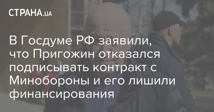 У Держдумі РФ заявили, що куратор ПВК "Вагнер" Пригожин відмовився підписувати контракт з Міноборони РФ, після чого йому сказали, що буде припинено держфінансування "Вагнера" та ПВК усунуть від участі у війні проти України.