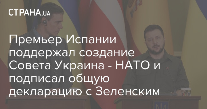 Президент України Володимир Зеленський та прем'єр-міністр Іспанії Педро Санчес ухвалили спільну декларацію, де торкнулися питання НАТО. Документ був підписаний під час візиту Санчеса до Києва.