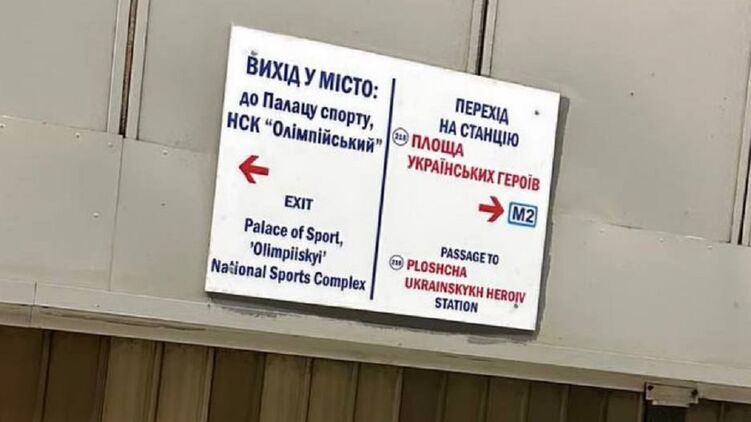 У Києві вже змінили табличку на перейменованій станції метро "Площа Льва Толстого". Тепер вона називається "Площа Українських Героїв".