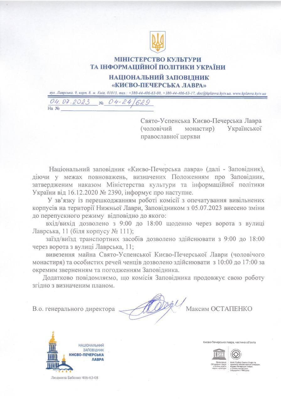 З 5 липня до Нижньої лаври можна буде потрапити лише з 9.00 до 18.00 (до 5 липня на територію лаври можна було потрапити з 5.30 до 20.00).