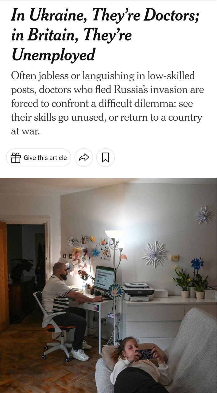 Доктор аль-Шейх, виходець з Іраку, який майже все життя працював хірургом у Харківській клінічній лікарні, взагалі не може знайти в Лондоні жодної роботи, хоча працював вантажником.