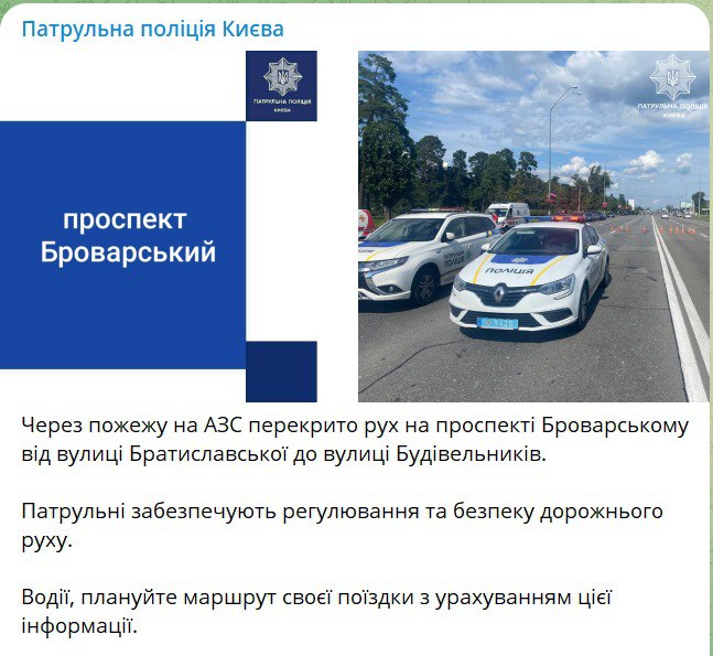 Тим часом, через пожежу на АЗС перекрито рух на Броварському проспекті від вулиці Братиславської до вулиці Будівельників.