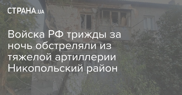 Сьогодні вночі російські війська тричі обстрілювали з тяжкої артилерії Нікопольський район Дніпропетровської області.