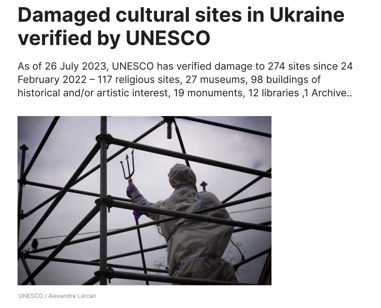 В ЮНЕСКО повідомили, скільки українських об'єктів культури постраждали від початку вторгнення з РФ
