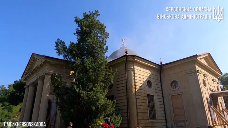 Херсонська ОВА публікує відео з наслідками ранкового обстрілу Катерининського собору