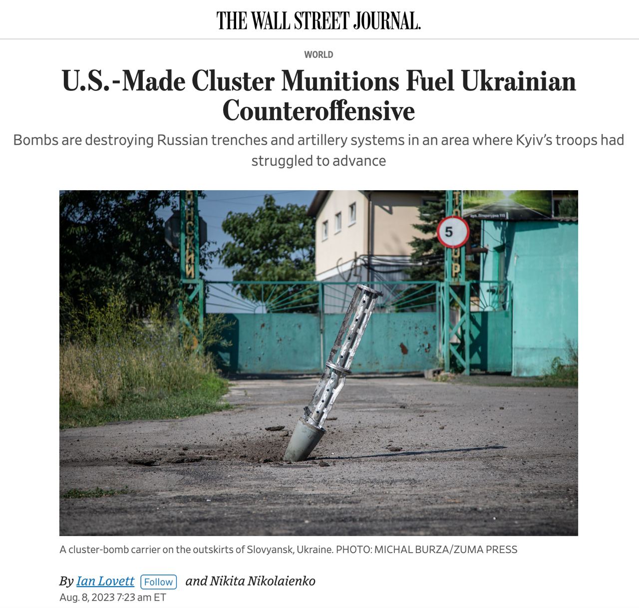 Імпульс українському наступу дало постачання американських касетних боєприпасів - The Wall Street Journal