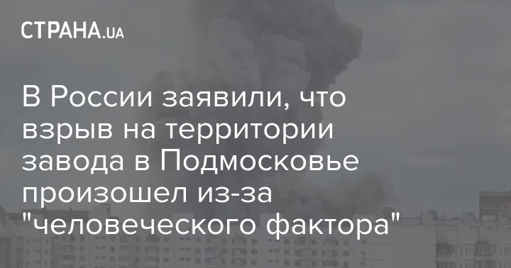 Вибух на території заводу в Підмосков'ї в Росії стався через "людський фактор" і порушення технологічного процесу.