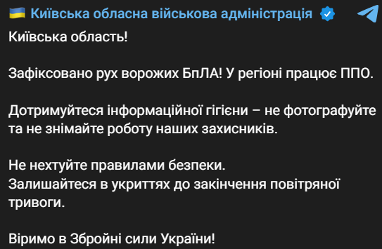"Зафіксовано рух ворожих БПЛА! У регіоні працює ППО", - йдеться у повідомленні.