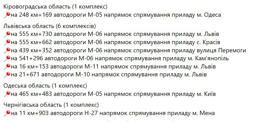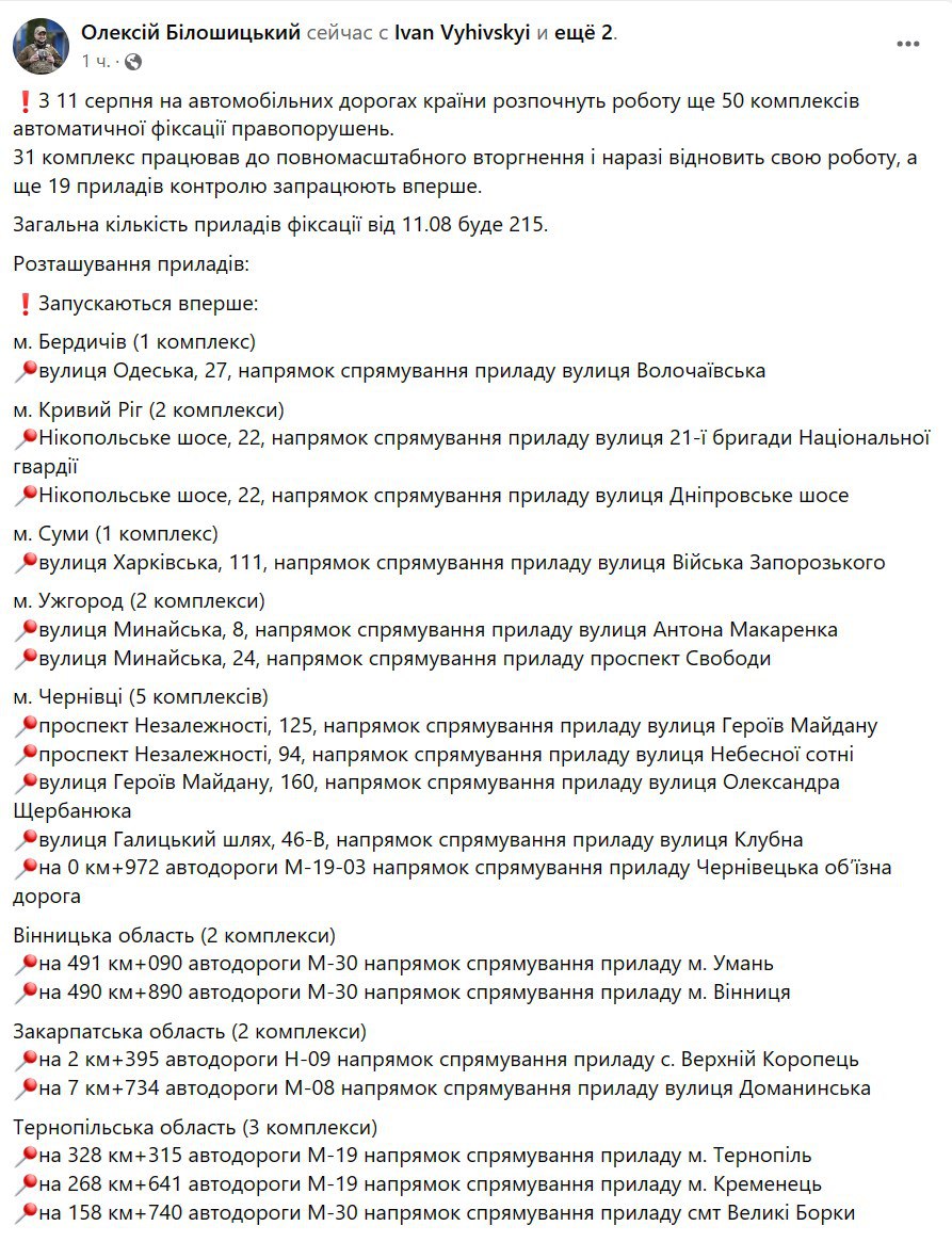Повний список локацій, де з 11 серпня відновиться відеофіксація – на скріншоті.
