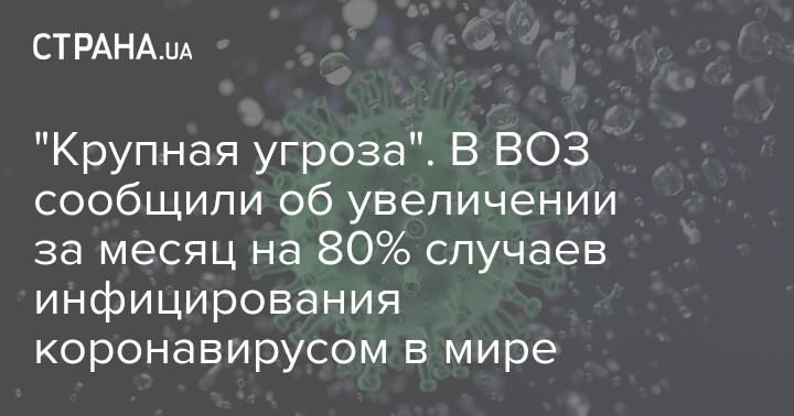 Число нових випадків захворювань на COVID-19 у світі зросло на 80% за останній місяць.