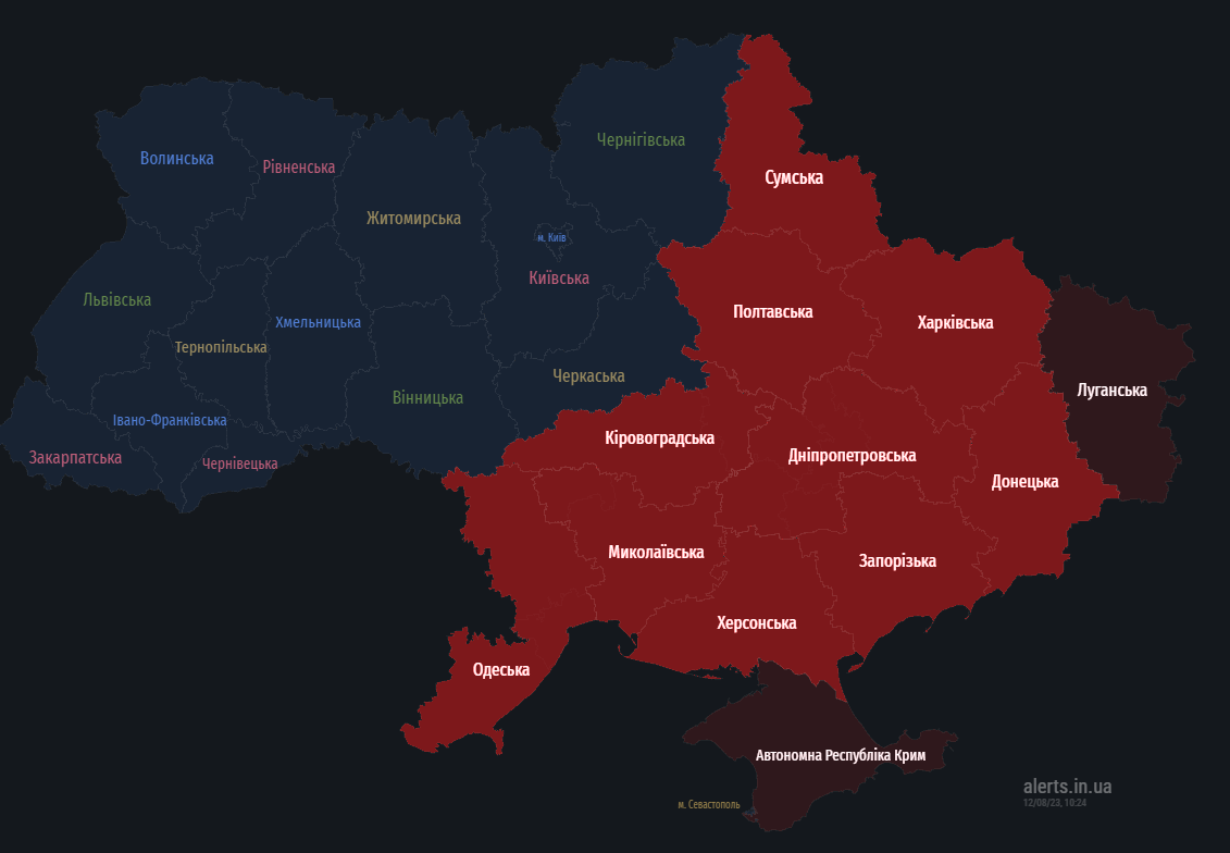 Вранці у суботу, 12 серпня, у східних та південних областях України оголосили повітряну тривогу.