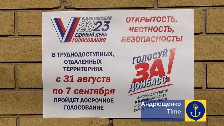 На них зазначено, що "дострокове голосування" відбудеться з 31 серпня до 7 вересня. Тоді як основний день голосування в РФ – 10 вересня.