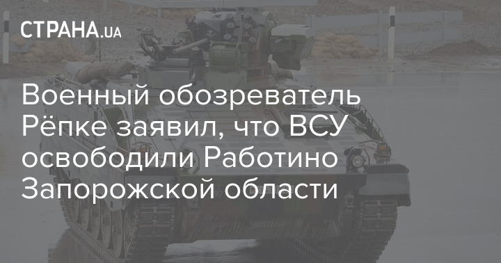 Військовий оглядач Рьопке заявив, що ЗСУ звільнили Роботино Запорізької області