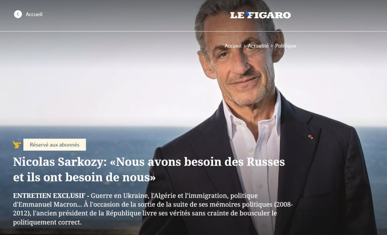 "Слова західних лідерів про підтримку України до останнього сильні та категоричні. Але що означає "до кінця"? Чи йдеться про взяття Донбасу? Криму? Чи йти до Москви? Анексія Криму в 2014 році була очевидним порушенням міжнародного права. Але коли мова йде" йдеться про цю територію, яка до 1954 року була російською і де більшість жителів завжди відчували себе російськими, я вважаю, що повернення до минулого ілюзорне", - заявив Саркозі.