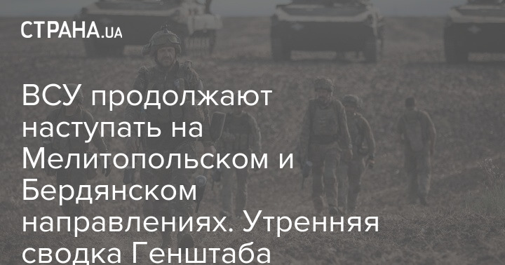 Сили оборони України продовжують вести наступальну операцію на Мелітопольському та Бердянському напрямах.