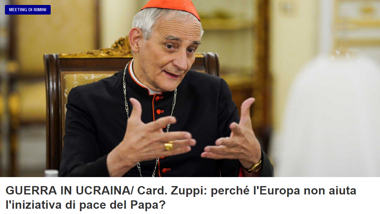 Посланець папи римського Франциска з врегулювання війни в Україні кардинал Маттео Дзуппі заявив, що Євросоюз "робить надто мало" для вирішення конфлікту.