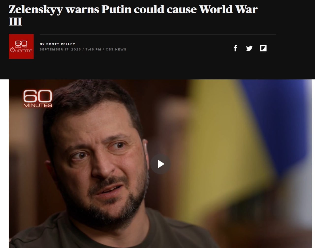 10.05 З'явилася точна цитата Зеленського в інтерв'ю CBS News щодо українських ударів територією РФ.