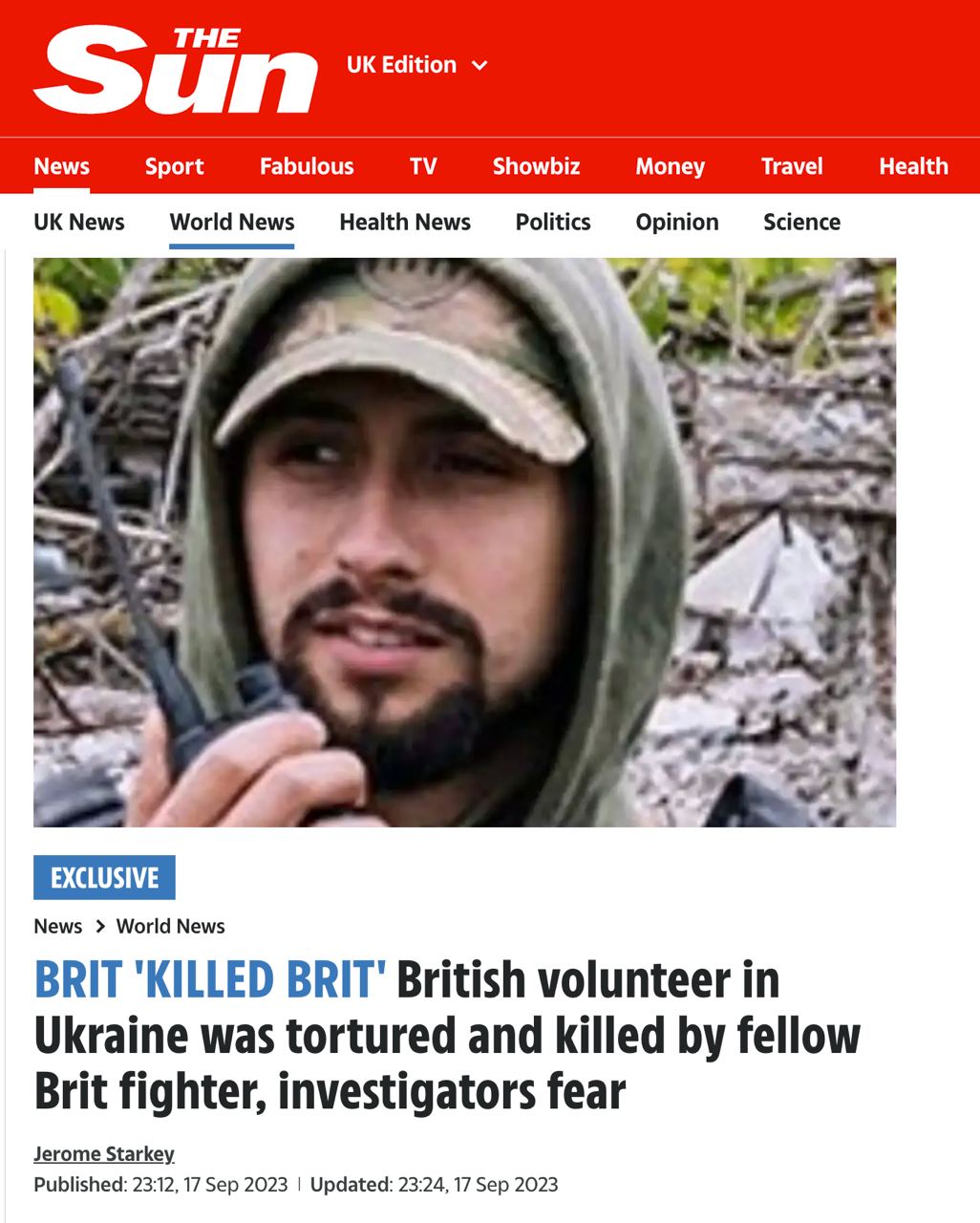 09.50 Британський доброволець Джордан Чедвік, тіло якого зі зв'язаними за спиною руками знайшли у відстійнику в Краматорську, був катований і вбитий іншим британцем, вважають слідчі.