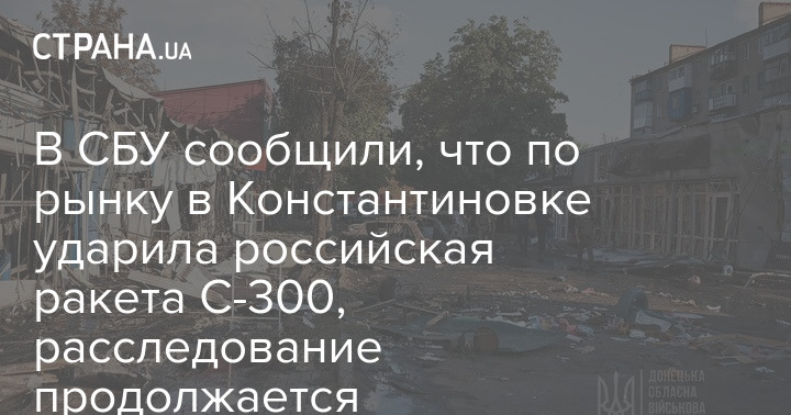 Служба безпеки України 6 вересня розпочала перевірку ракетного удару по ринку Костянтинівки Донецької області. Слідство йде за статтею "Порушення законів та звичаїв війни".