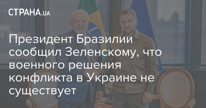 Президент Бразилії Луїс Інасіу Лула да Сілва заявив Володимиру Зеленському, що воєнного вирішення конфлікту в Україні не існує. На думку бразильського лідера, ідеальний шлях виходу із ситуації — це припинення вогню та мирні переговори.