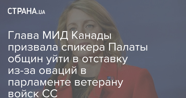 Міністр закордонних справ Канади Мелані Жолі закликала спікера Палати громад Ентоні Рота піти у відставку через нещодавній скандал із вшануванням у парламенті ветерана дивізії СС "Галичина" Ярослава Гунька під час візиту Володимира Зеленського.
