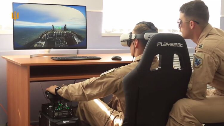 Це пілоти, які залишились в Україні. У вільний від війни та виконанням бойових завдань час вони знайомляться з кабіною F-16 у віртуальній реальності та виконують спільні місії у складі пари, ланки, ескадрильї.